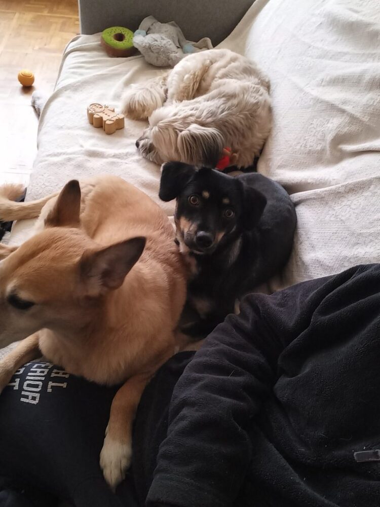 Er braucht erfahrene Menschen, aber keine absoluten Profis. Am besten wäre es, wenn es zu Hause noch einen weiteren Hund gäbe. Ein Hund, der gut angepasst und sozial ist und Gurukas dabei helfen kann, sich an Dinge zu gewöhnen, die für ihn noch neu und beängstigend sind. Im Moment ist Guru in seiner Umgebung mit seinen Leuten ziemlich mutig, aber manchmal rennt er zu Hause, wenn er ein Leckerli bekommt, in seine sichere Ecke.